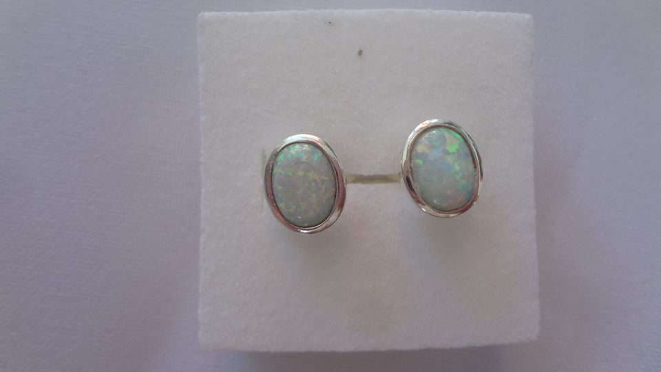 Tyto náušnice jsou se syntetickým duhovým opálem, který věrně napodobuje ty nejhezčí přírodní opály za zlomek ceny pravých.